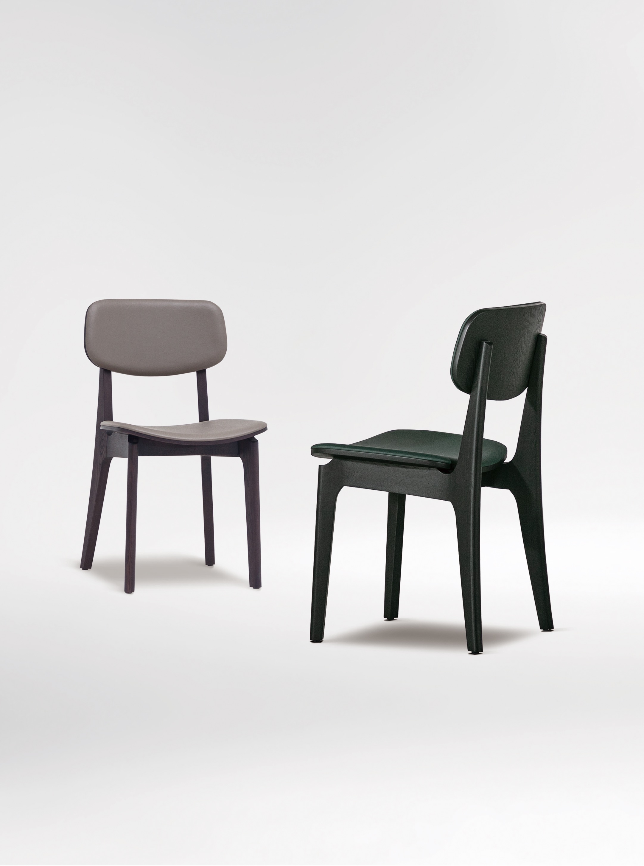 Leaf Chair is simple yet refined. Curved plywood seat and backrest are small details that go a long way in comfort. Seats are covered with integrally-molded polyurethane foam. Leaf Chair is a must have in any dining room space. Available in leather only upholstery.