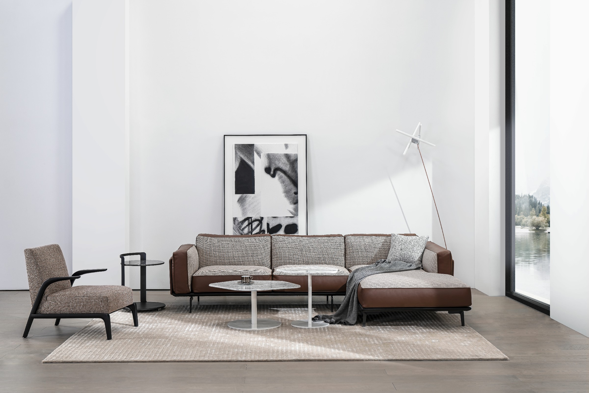 The Moda Sofa series delicately present a balanced design between form and comfort. On the outside, it is structurally supported by metal panels wrapped in choices of high performance Eco-Leather or Top Grain leather. On the inside, it is fitted with plush yet supportive cushions, consist of foam and feather-down wrap. The exceptionally comfortable seats rests atop streamlined metal legs, atop with a steel seat frame with cross-woven elastic webbing and sinuous spring. The Moda Sofa is chic enough for a posh New York City condo, yet cozy enough for a mountain cabin in Vail, this beautiful yet simple design fits seamlessly into any backdrop. Available in lounge chair, sofa and sectional configurations with your choice of all fabric (removable), all leather, or fabric and leather combination upholstery.
